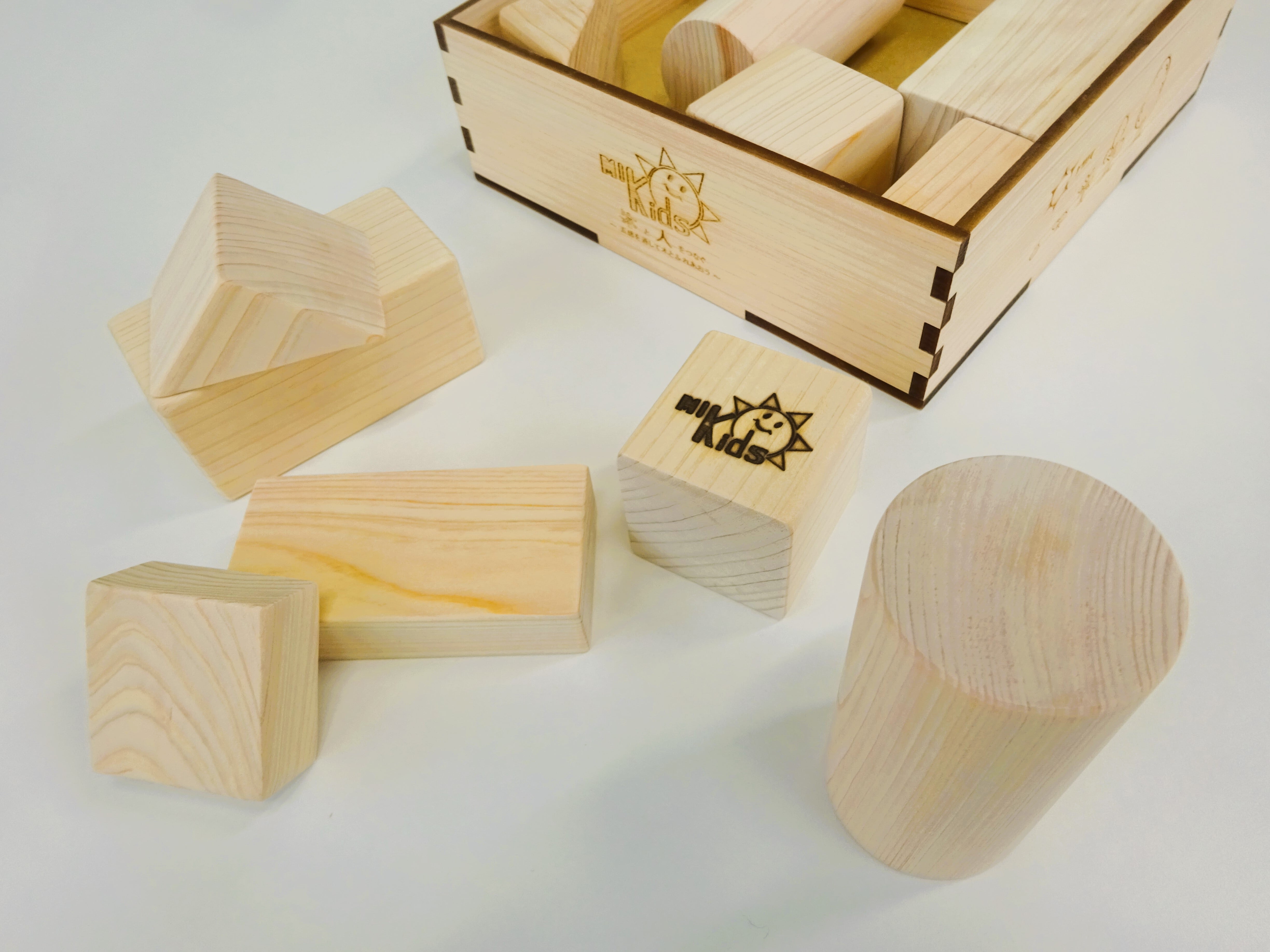 栃木県産の間伐桧材をふんだんに使用した、環境にやさしいおもちゃ。