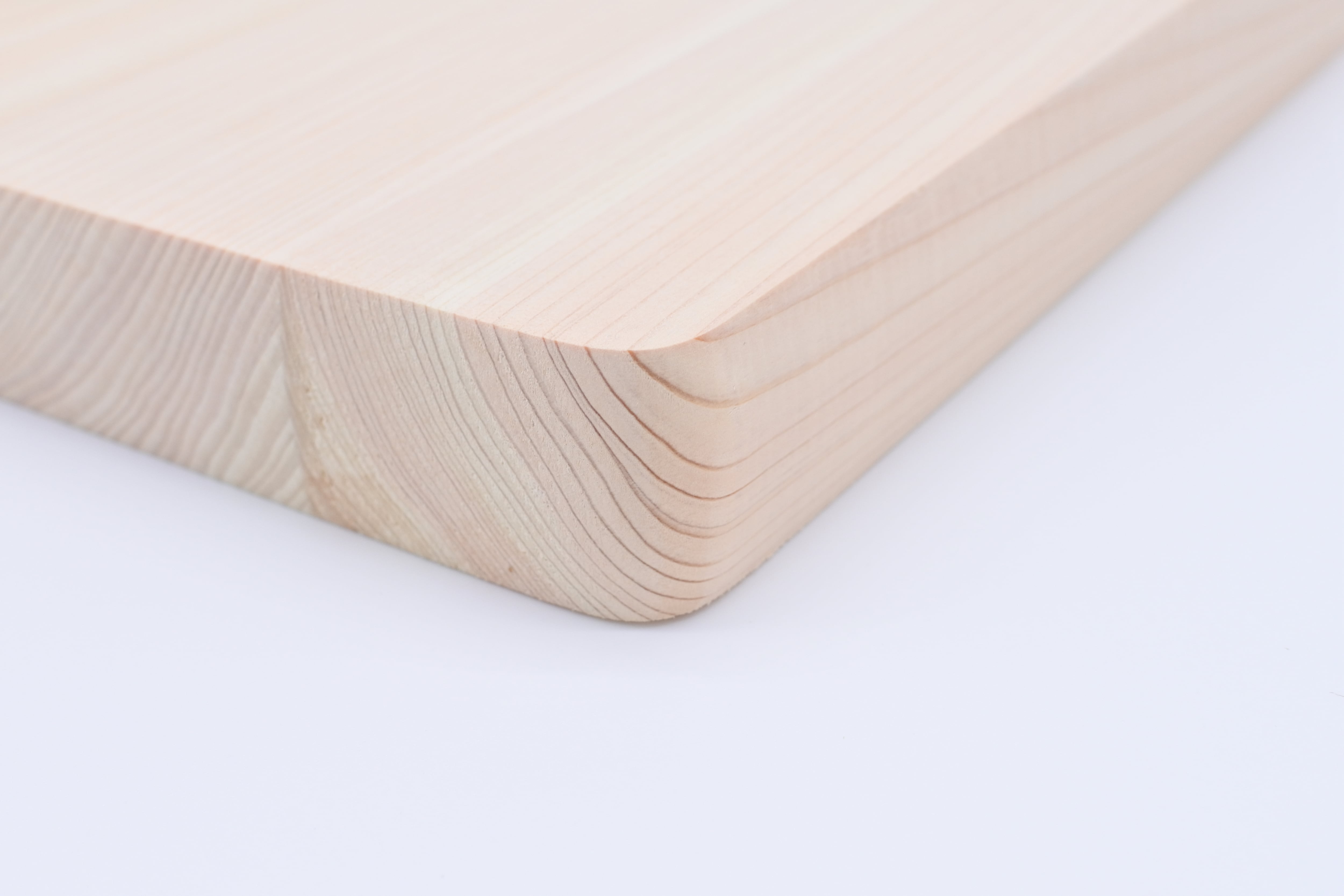 高級日光桧を使用。肌目が綿密で独特の香りと光沢があります。乾燥性が良く、強度があるため長くお使いいただけます。しっかり使える厚さ3cm。
