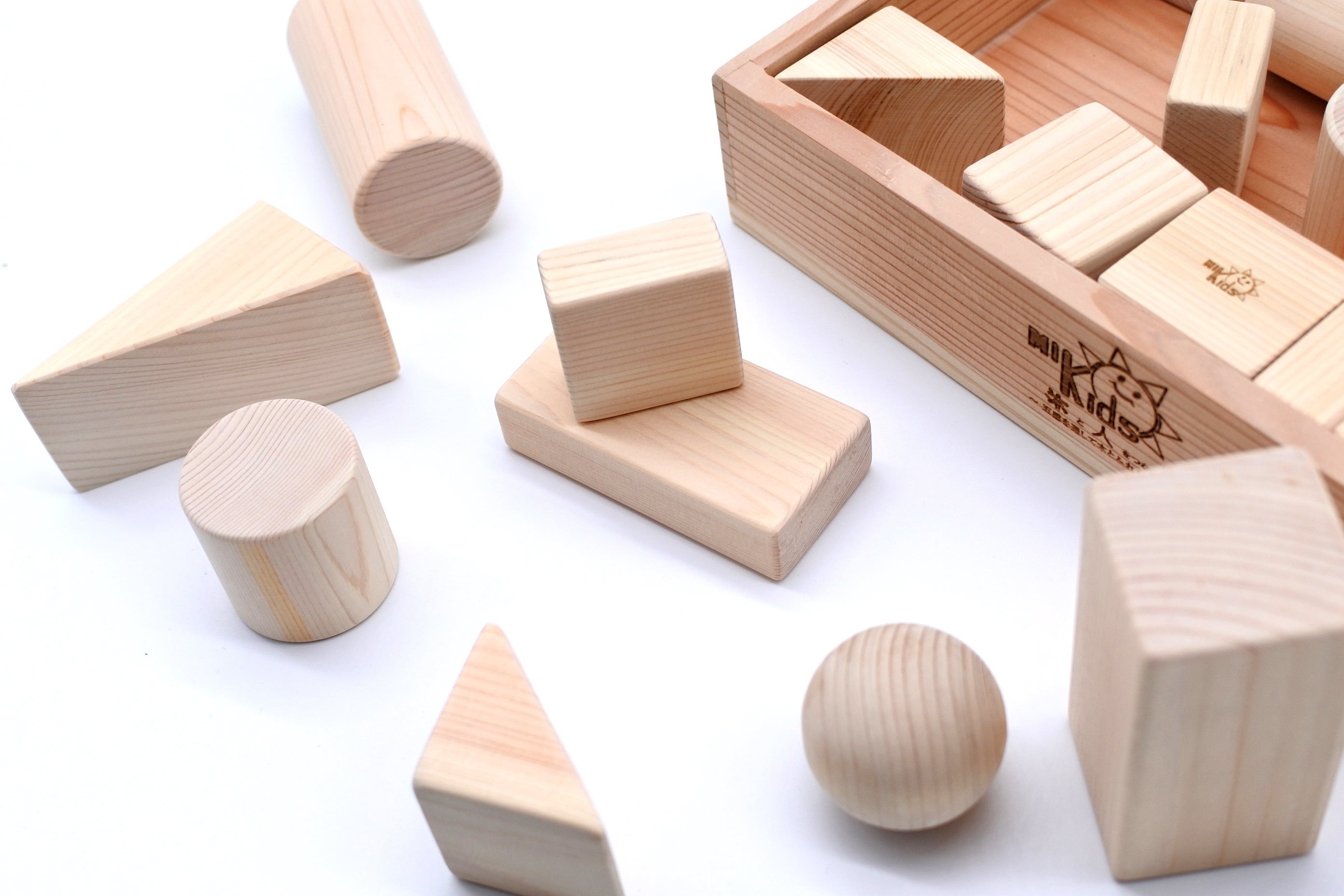 栃木県産の間伐桧材をふんだんに使用した、環境にやさしいおもちゃ。 木のぬくもりを五感を通して体感してもらい、木への愛着や親近感を学んでいただけます。 こちらはつみきの大きめセットです。 材質:日光桧 内容:つみき - 29PCS(※右上と右下の三角つみきは厚さ20㎜が2枚重なっています) 投げ輪 - 1つ サイズ:263×232×53㎜(収納箱) 5×5マス(1マス42㎜角) 日本製(栃木県)